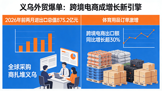 3月11日消息,2026年以来义乌外贸持续火爆,前两月进出口总值达875.2亿元,同比增长21.3%,其中出口增幅高达22.7%。全球采购商扎堆义乌,开市首日客流达29.1万人次,同比暴涨23.8%,美加墨世界杯临近更带动体育用...